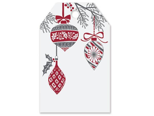 Christmas gift tags are great for use on your gift baskets, gift bags, and wrapped gifts. Tags have pre-punched holes for attaching to gifts with ribbons, raffia, or twine. Selections include 3" circle, 3" die cut shape and 2.25x3.5" traditional tag shape. Packed 50 by single designs.